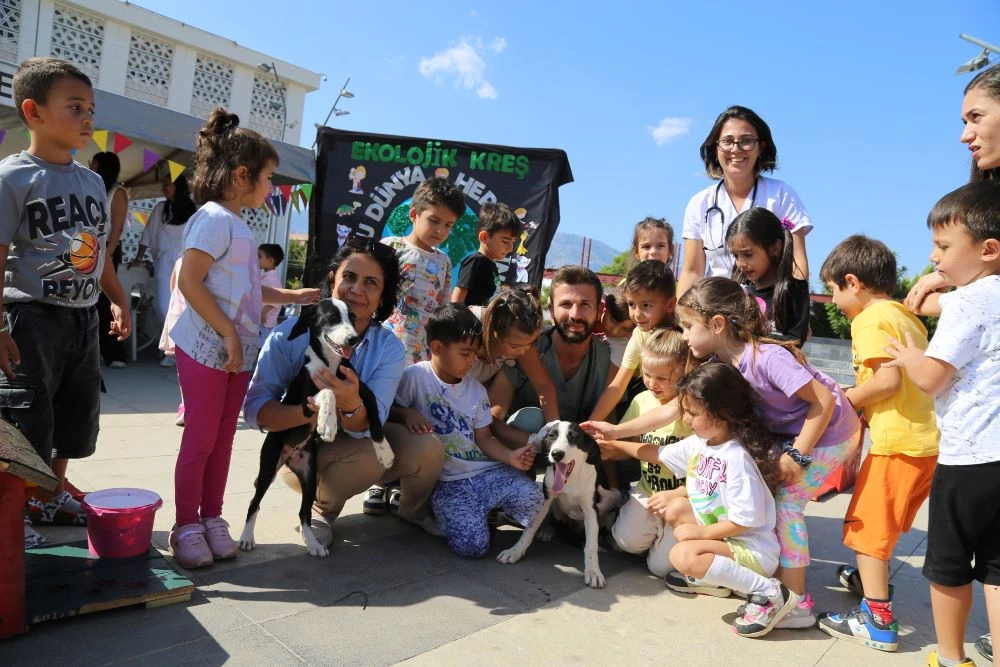 Döşemealtı Kent Meydanında düzenlenen Hayvanları Koruma Günü etkinliğinde minikler kendi elleriyle hazırladıkları mamaları ilçede yaşayan sokak hayvanlarına dağıtılmak üzere Belediye Veteriner Hekimlerine teslim etti. Veteriner hekimler Yunus Emre Yayla ve Nazlı Kuş nezaretinde etkinlik için getirilen köpeklerin stetoskop ile kalp atışlarına dinleyen Ekolojik Kreş öğrencileri duydukları kalp atışı sesleriyle büyük şaşkınlık ve sevinç yaşadı.