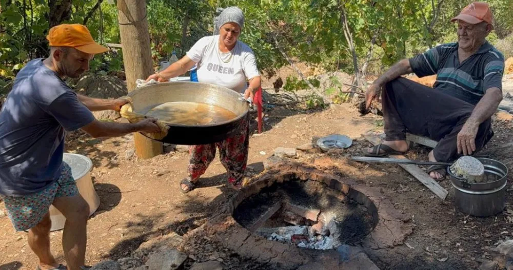 Antalya'nın Gazipaşa ilçesinde, geleneksel pekmez üretimi başladı. Aileler, bağlardan topladıkları üzümleri imeceyle işliyor, asırlık yöntemlerle saatlerce süren emeğin sonunda pekmeze dönüştürüyor.