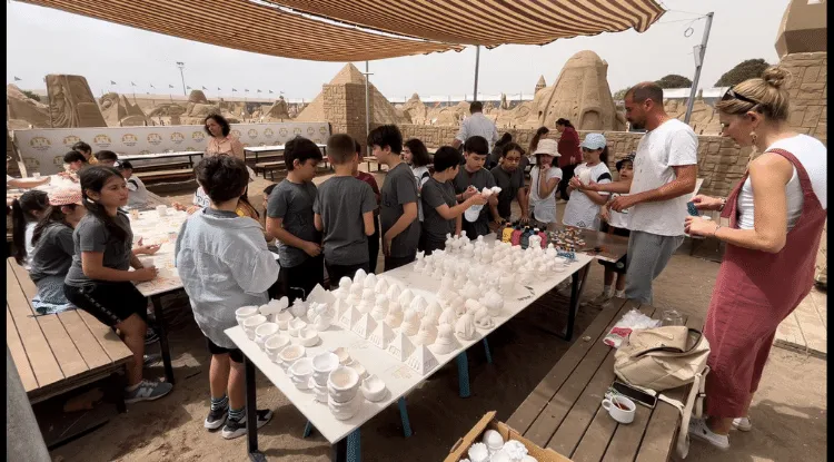 Ziyaretçilerine kum heykeller dışında farklı deneyimler sunmayı hedefleyen Karaca, “Akşamları da yapılacak çok aslında etkinliklerimiz var. Mesela bir tanesi teleskopla dönemsel olarak gökyüzünü teleskoplarla gözlemleyebiliyorlar. Tabii onun yanı sıra yine video mapping çalışmamız var. Burada bir heykeli özel projeksiyonlarla canlandırıyoruz. Bu heykelde oluşan bir 5 dakikalık bir hikaye oluşturduk. Heykel adeta canlanıyor. O da çok güzel bir deneyim. Onun yanı sıra okullarla alakalı çocuk ziyaretçilerimizle ilgili bir alanımız var. Özel sihirli kum kale dediğimiz bir alan. Burada miniklere temel seviyede kinetik kumla, modelaj kalemleriyle, bir saat süren bir kum heykel atölye programı çerçevesinde eğitim veriyoruz. Yine aynı şekilde içerideki minik heykellerin minik objelerini yaptırdık, bunların boyamasını yaptıkları atölye çalışmamız var” diye konuştu.