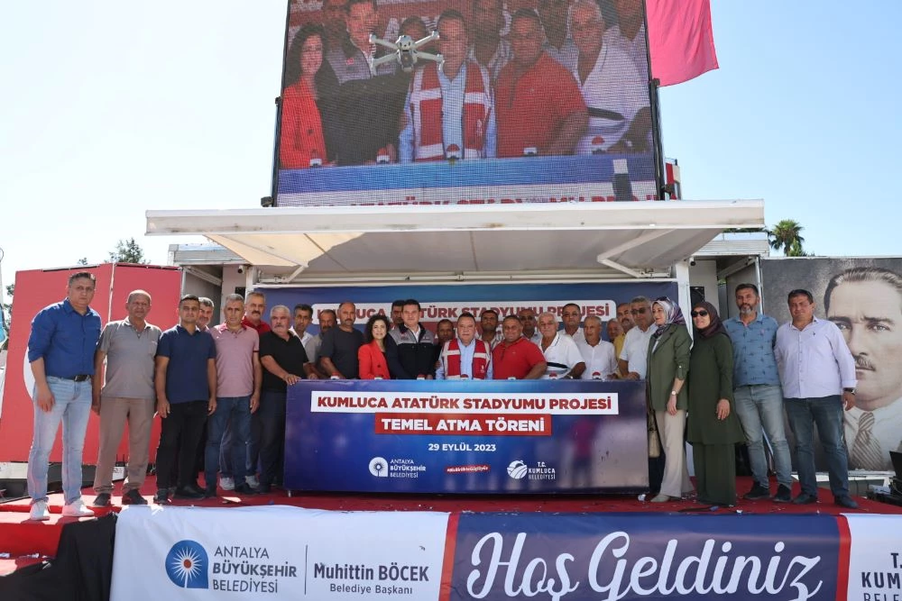 Kumluca Kaymakamı Tekin Erdemir de stadyumun Kumluca halkına hayırlı olmasını diledi. Konuşmaların ardından Antalya Büyükşehir Belediyesi’nin Kumluca’ya yapılan hizmetlerin tanıtıldığı film izlendi. Daha sonra Başkan Böcek ve tüm protokol üyelerinin katılımı ve dualarla Kumluca Atatürk Stadyumu’nun temeli atıldı.