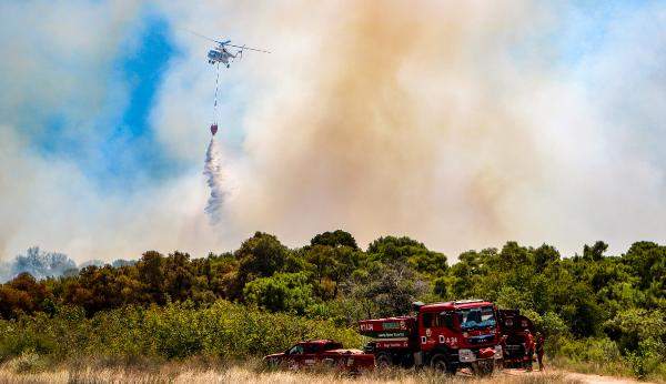Yangına hem karadan hem de havadan müdahale edildi. Çevredekiler de ellerindeki tırmıklarla söndürme çalışmalarına destek verdi. Bu sırada bazı kişiler de itfaiye erleri ile orman işçilerine su taşıdı. Yoğun duman nedeniyle ekipler, zor anlar yaşadı. 6 arazöz, 2 su ikmal, 2 ilk müdahale, 3 helikopter, 4 uçak ve onlarca itfaiyenin müdahale ettiği yangın, 2 saatte kontrol altına alındı. 1 hektar alanın zarar gördüğü yangınında soğutma çalışmalarının sürdüğü bildirildi.