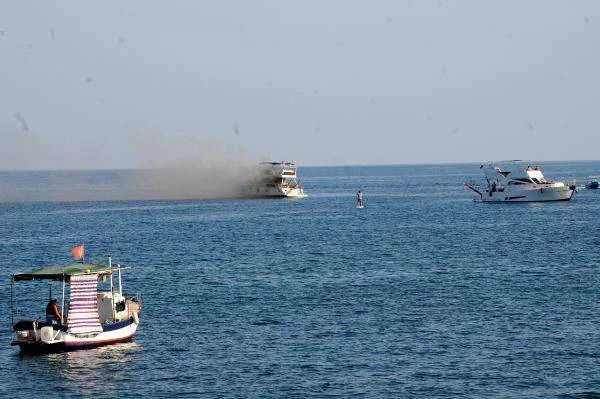 Alanya’da tersane açıklarında turistlerin gezintiye çıkarıldığı ‘Şahmeran’ adlı lüks yatta saat 16.30 sıralarında henüz bilinmeyen nedenle yangın çıktı. Haber verilmesi üzerine bölgeye itfaiye, polis ve Sahil Güvenlik Komutanlığına bağlı ekipler sevk edildi. Aralarında turistlerin de bulunduğu teknedeki 6 kişiden bazıları denize atlarken diğerleri ise Sahil Güvenlik Komutanlığı’na ait zodyak botla tahliye edilerek yakındaki diğer yatlara aktarıldı. O sırada yanan teknenin yanına gelenler jet skiler ve sürat tekneleriyle su püskürterek söndürmeye çalıştı.