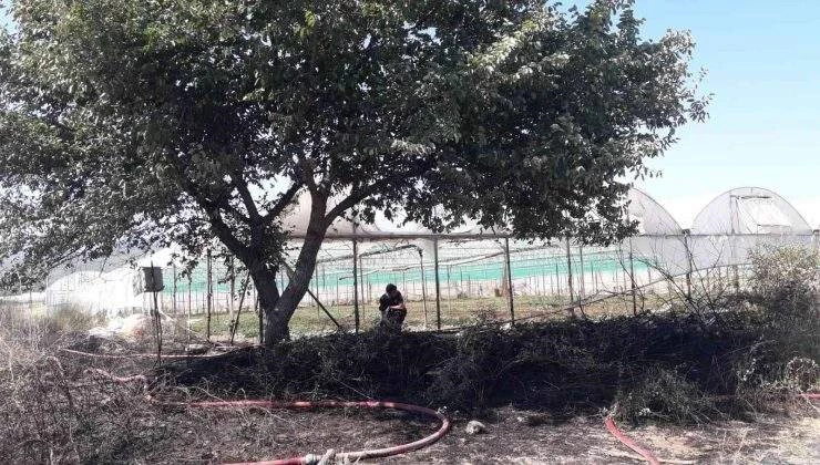 Antalya’nın Serik ilçesinde makilik alanda çıkan yangın bazı seralara zarar verdi.