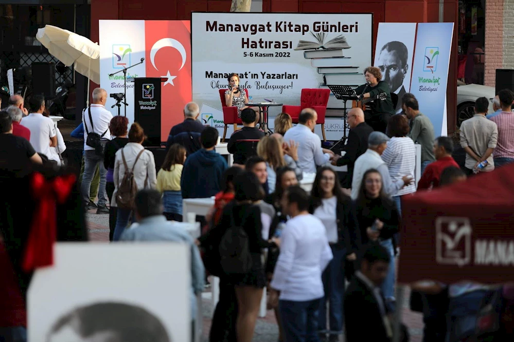 Manavgat Belediyesi ve Manavgatlı Yazarlar Birliği’nin birlikte düzenlediği “Manavgat Kitap Günleri- Manavgat’ın Yazarları Okurlarıyla Buluşuyor” etkinliği, ünlü sanatçı Pelin Batu ve Müzisyen-yazar Haluk Çetin’nin düzenlediği söyleşi gerçekleşti. Etkinliğe, Manavgat Belediye Başkanı Şükrü Sözen, belediye birim müdürleri, Manavgat Belediyesi Gençlik Meclisi Başkanı Celal Görgeç, Akdeniz Üniversitesi Manavgat Meslek Yüksekokulu Müdür Doç. Dr. Fatih Uslu ve vatandaşlar katıldı. 5-6 Kasım tarihleri arasında Cumhuriyet Meydanı Sergi Alanı’nda yapılan etkinlikte 41 yazar, okurlarıyla buluştu. Yazarlar, kitaplarını ve şiirlerini Manavgatlı kitapseverlere tanıttı. Manavgat Belediye Başkanı Şükrü Sözen, tüm kitap stantlarını gezerek yazarlarla tek tek sohbet etti, imzalı kitap almayı da ihmal etmedi.
