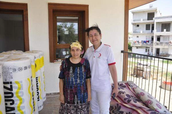Antalya'nın Manavgat ilçesinde geçen yıl yaşanan yangın felaketinde evleri yanan ve yenileri teslim edilen vatandaşlara Türk Kızılay ekiplerince eşya yardımı yapıldı.
