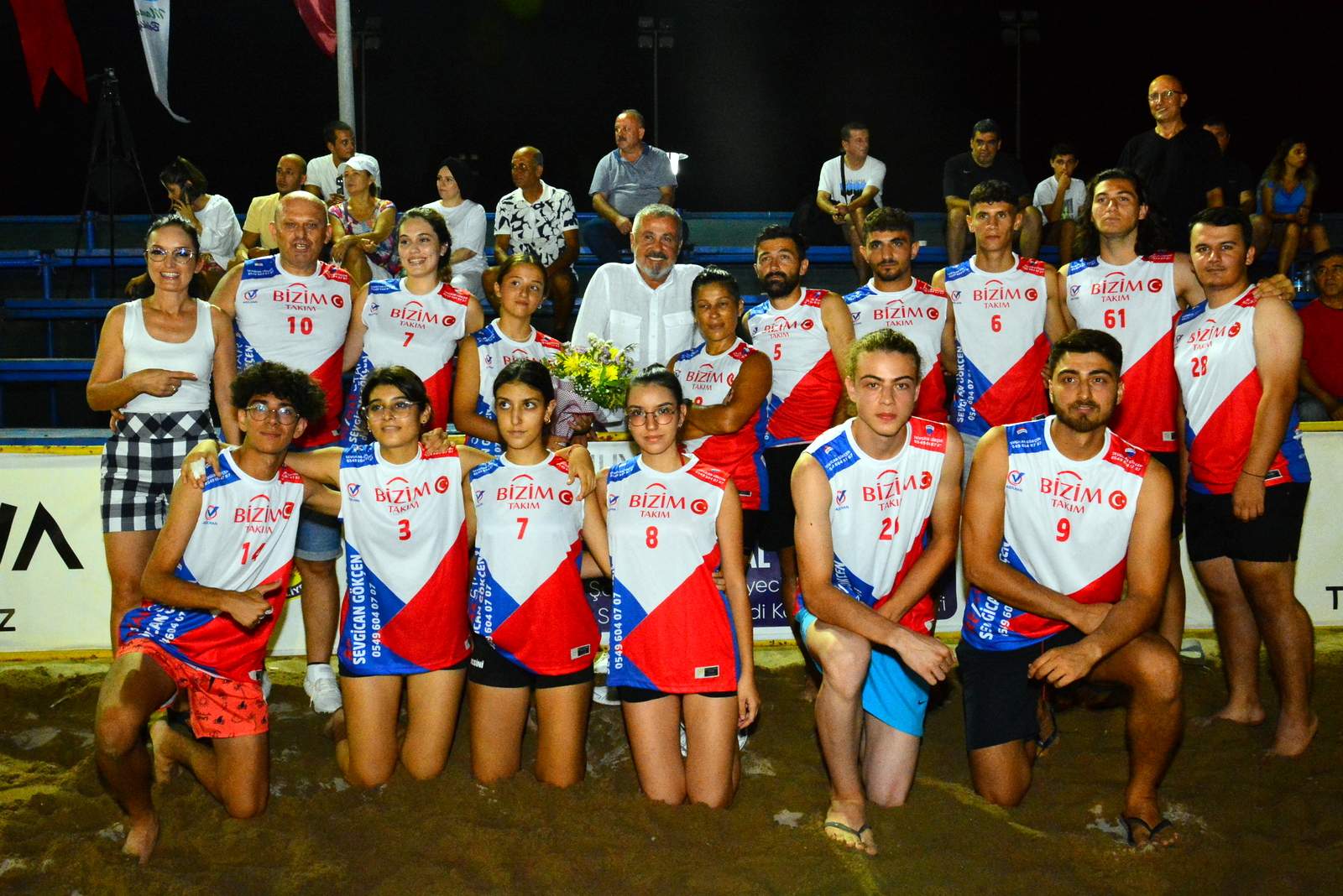 Manavgat Belediyesi’nin, yaz aylarını daha keyifli hale getirmek ve sporu kent halkıyla buluşturmak amacıyla düzenlediği “Plaj Voleybolu Halk Turnuvası” Sorgun Boğaz Otel sahilinde kıran kırana geçen müsabakalarla başladı. 5-11 Eylül tarihlerinde gerçekleşecek olan turnuvanın ilk gününü, Manavgat Belediye Başkanı Şükrü Sözen, eşi Hatice Sözen, belediye başkan yardımcıları ve çok sayıda sporsever takip etti. 24 takımın şampiyonluk için ter dökeceği maçlarda her takımda 4 as 4 yedek oyuncu bulunuyor. 80 kadın, 110 erkek sporcunun katılımıyla başlayan turnuvanın finali ise 11 Eylül’de oynanacak. Ayrıca Manavgat Belediyesi, toplumda kadın-erkek eşitliğini sağlamak için her takımda en az 1 kadın sporcunun oynaması şartını da gerçekleştirdi. Turnuvayı, Türkiye’nin en ünlü Plaj Futbolu sunucusu olan Oktay Sarı, izleyenlere canlı olarak aktaracak.