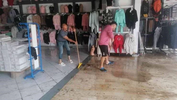 Yağmurdan etkilenen iş yerlerinde sel suları temizlenirken, yağmurdan etkilenen malzemeler de yenilendi. Esnaf bir taraftan yağmurdan etkilenen iş yerlerini temizlerken, diğer taraftan yağmur nedeniyle turistler denize gitmek yerine alışverişe çıkan turistlerle ilgilendi. /HABERLER.COM