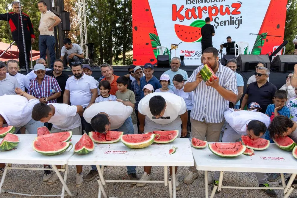 Şenlikte düzenlenen bir diğer renkli etkinlik ise en hızlı karpuz yeme yarışması oldu. Heyecan dolu yarışmanın kazananı Latif Balkan olurken, yarışma alanında hem yarışmacılar hem de izleyenler eğlenceli anlar yaşadı.