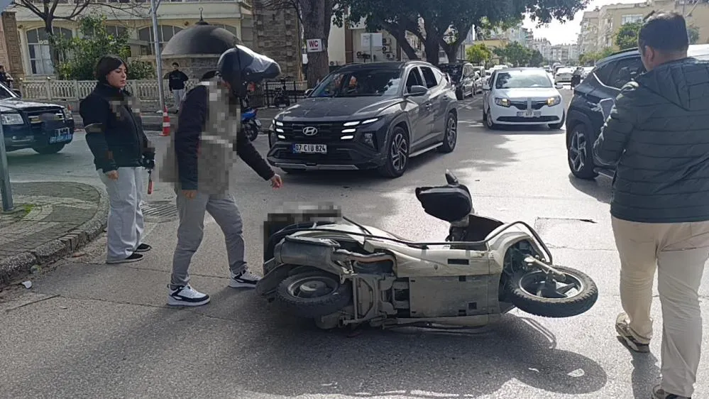 Antalya’nın Manavgat ilçesinde kavşak sisteminde kararsız kalan ve son anda dönmek isteyen motosikletli kurye ile otomobil çarpıştı. Şans eseri yaralananın olmadığı kaza güvenlik kamerasına yansıdı.