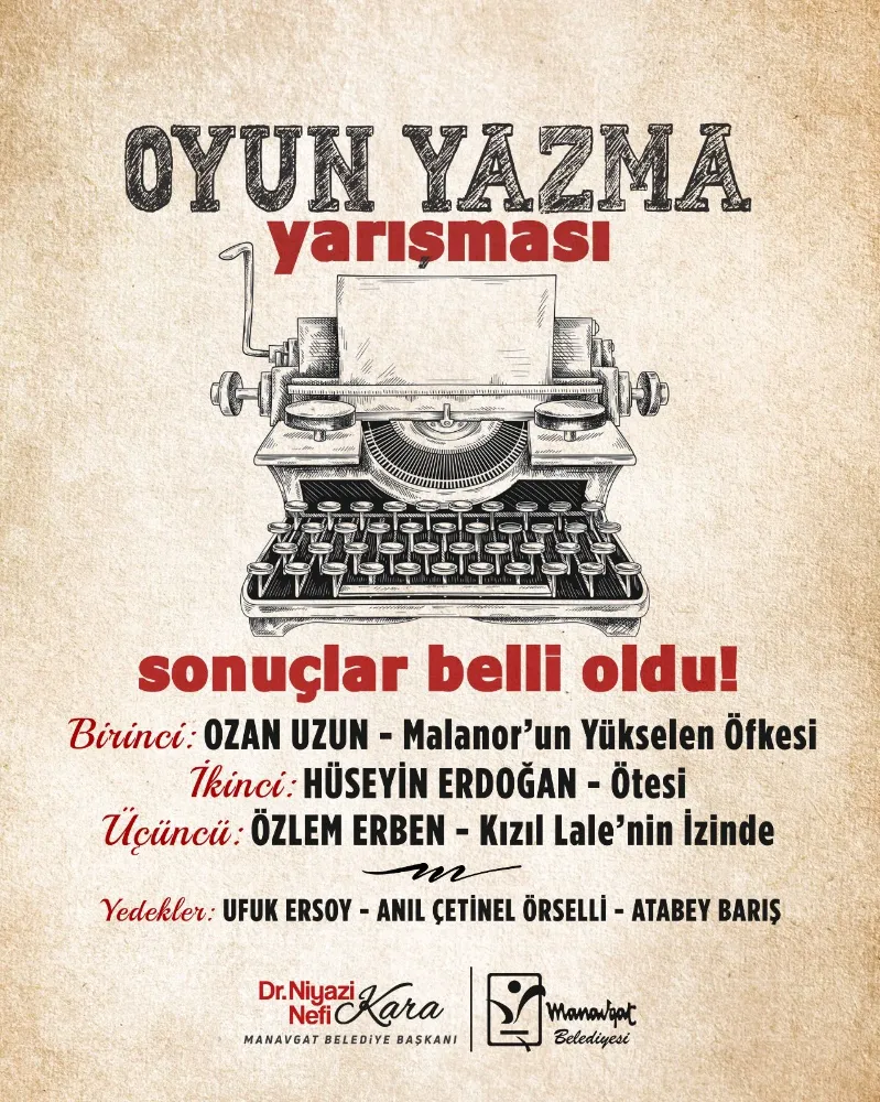 Manavgat Belediyesi’nin toplumsal şiddetle mücadeleye dikkat çekmek ve genç yazarlara fırsatlar sunmak amacıyla düzenlediği “Farkındayım, şiddetin karşısındayım” temalı oyun yazma yarışmasının sonuçları açıkladı.