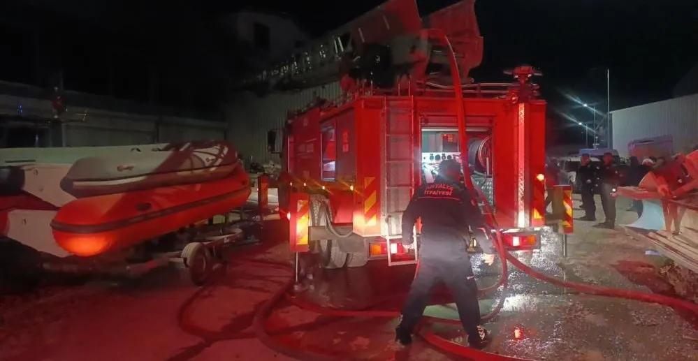 Yaralının çıkarılmasının ardından itfaiye ekipleri yangına müdahale etti. İşyerinde çok sayıda yanıcı fiber tekne ve tiner gibi yanıcı madde olması nedeniyle zaman zaman patlamalar meydana gelirken, ekipler yangına müdahale etmekte zorlandı. Dumandan etkilenen itfaiyecilerin dışarıya çıkarak su içip dinlendikleri gözlendi. İş yeri yetkililerinden olduğu belirtilen 1 kişi fenalık geçirdi. Yaklaşık 1 saatlik çalışmanın ardından yangın kontrol altına alınarak soğutma çalışması yapıldı.