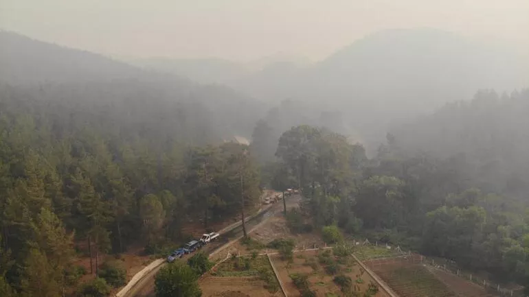 Marmaris'te ormanlık alanda çıkan yangınla mücadele son sürat devam ediyor. Orman işçileri ve itfaiye ekipleri, gece boyunca yangına karadan müdahale etti. Sabah erken saatlerde ise havadan müdahale yeniden başladı. Bördübet mevkisindeki yangının duman ve külleri rüzgarın etkisiyle ilçe merkezine kadar geldi. Asparan mevkisinden ilçe merkezine gelen yol trafiğe kapatıldı. İlçe merkezine ulaşım İçmeler Mahallesi'nden sağlanıyor. Yangın nedeniyle Datça-Marmaris karayolu da trafiğe kapatıldı. İşte Marmaris yangınında dakika dakika yaşanan gelişmeler...