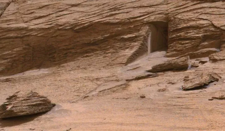 NASA'nın yayımladığı Mars'ta çekilmiş fotoğrafların arasında insan eliyle yapılmış gibi duran bir mağara kapısını andıran fotoğraf merak uyandırdı. Curiosity uzay aracındaki Mast Camera tarafından 7 Mayıs'ta çekilen görüntü, kayanın içine doğru kazılmış bir kapıya benzeyen yapı gösterdi. Fotoğraftaki yapının, doğal olarak oluşan bir oluşum olamayacak kadar simetrik görünmesi dikkat çekti.