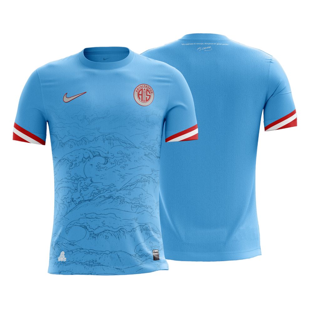 Üzerinde dalga deseni, kollarında kırmızı-beyaz şeritler bulunan alternatif mavi forma çevre kirliliğinin yanı sıra özellikle denizlerimizdeki kirliliğe dikkat çekiyor. Yaptığı deniz kirliliği belgeseli birçok ülkede ve belgesel kanallarında gösterilen, uluslararası ödüller alan yönetmen Alican Abacı’nın rol aldığı film, Konyaaltı sahilinde çekildi. Denizlerdeki kirliliğin gösterilmesiyle başlayan film, “Kirletmeyelim, görmezden gelmeyelim” vurgusu ile bitiyor. Formanın sol alt köşesine ise dalga emojisi eklendi. Forma tanıtımları, klasik çubuklu forma ile sona erecek.