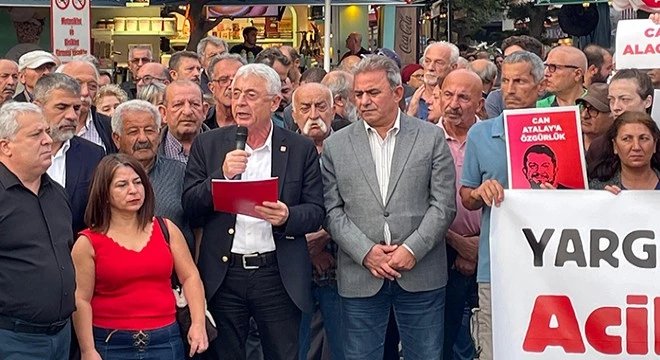 Yargıtay'ın Türkiye İşçi Partisi'nin (TİP) tutuklu vekili Can Atalay için 'hak ihlali' kararı veren Anayasa Mahkemesi (AYM) üyeleri hakkında suç duyurusunda bulunması ile ilgili Antalya Emek ve Demokrasi Güçleri Attalos Heykeli önünde basın açıklaması yaptı.