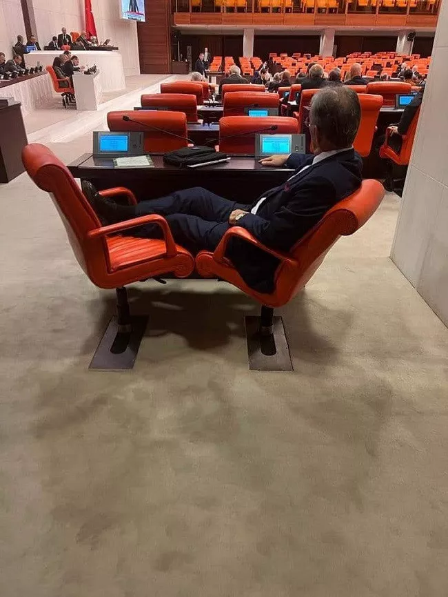 İyi Parti Milletvekili Ahat Andican, Meclis'teki bütçe görüşmeleri sırasında ayağını yanındaki sandalyeye uzatarak adeta keyif yaptı. İYİ Partili vekilin fotoğrafı tepki çekti.