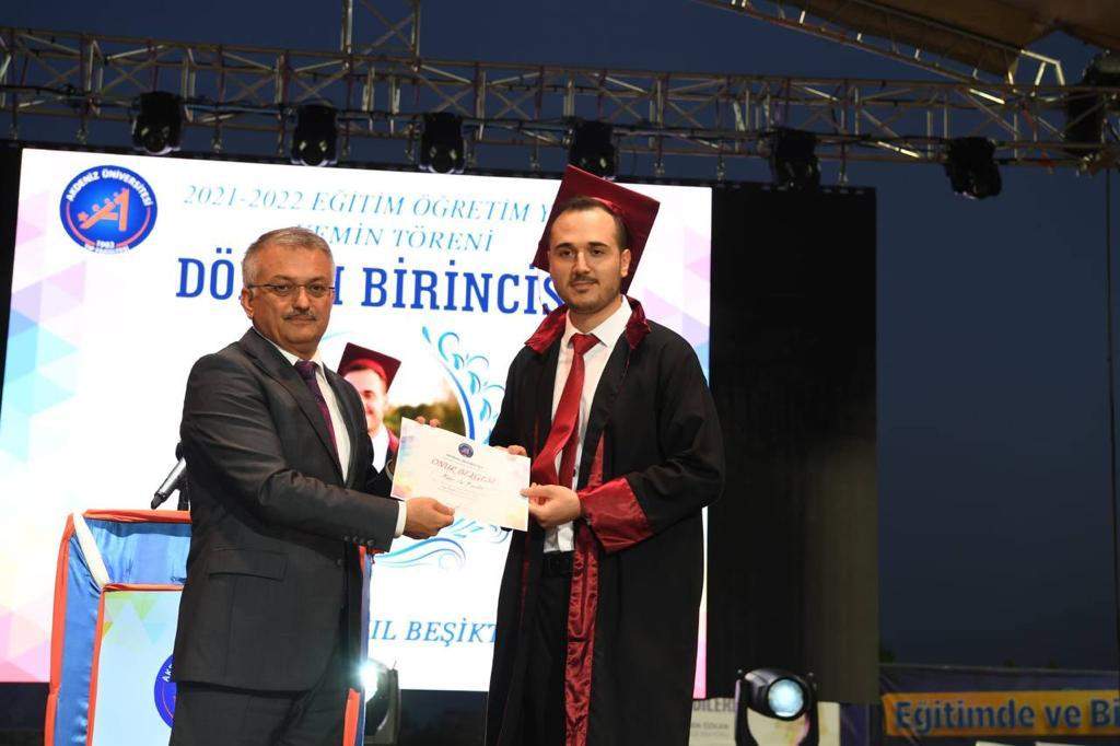 Konuşmasının ardından Vali Ersin Yazıcı Tıp Fakültesi Dönem birincisi Anıl Mahir Beşiktaş’a onur belgesini takdim etti. VARIŞ HABER