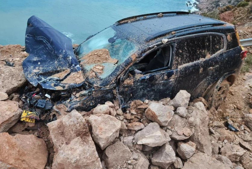 Öte yandan heyelan anı, olay sırasında toprak ve kaya parçalarının altında kalan aracın araç kamerasına yansıdı. Görüntülerde, otomobilin bir anda yuvarlanan toprak ve kaya parçalarının altında kaldığı, bu sırada hava yastıklarının açıldığı ve ön camının kırıldığı görüldü. /İHA