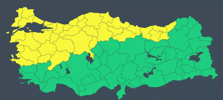 Meteoroloji'nin son hava durumu raporunda yarın beklenen kuvvetli rüzgar ve fırtına nedeniyle 39 kente sarı kodlu uyarıda bulunuldu. Meteoroloji'den yapılan açıklamada 'Ulaşımda aksamalar, çatı uçması, ağaç veya direklerin devrilmesi, soba ve doğalgaz kaynaklı baca gazı zehirlenmesi gibi olumsuzluklara karşı dikkatli ve tedbirli olunmalıdır' denildi. İstanbul Büyükşehir Belediyesi'nden de sağanak yağış ve fırtına uyarısı geldi.