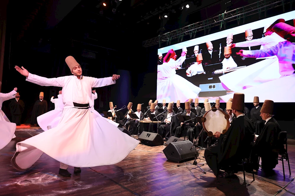 Mevlana’yı anma etkinliği Antalya Büyükşehir Belediyesi İsmail Baha Sürelsan Konservatuvarı Tasavvuf Müziği Topluluğu eşliğinde düzenlenen Semâ Töreni ile devam etti. /VARIŞ HABER