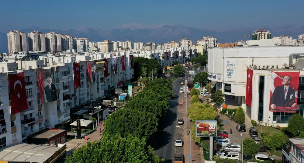 Antalya’da Muratpaşa Belediyesi, 30 Ağustos Zafer Bayramı’nın 101’inci yılında kentin ana ulaşım akslarından Tekelioğlu Caddesi’ni dev Türk bayrakları ve Atatürk posterleriyle donattı.