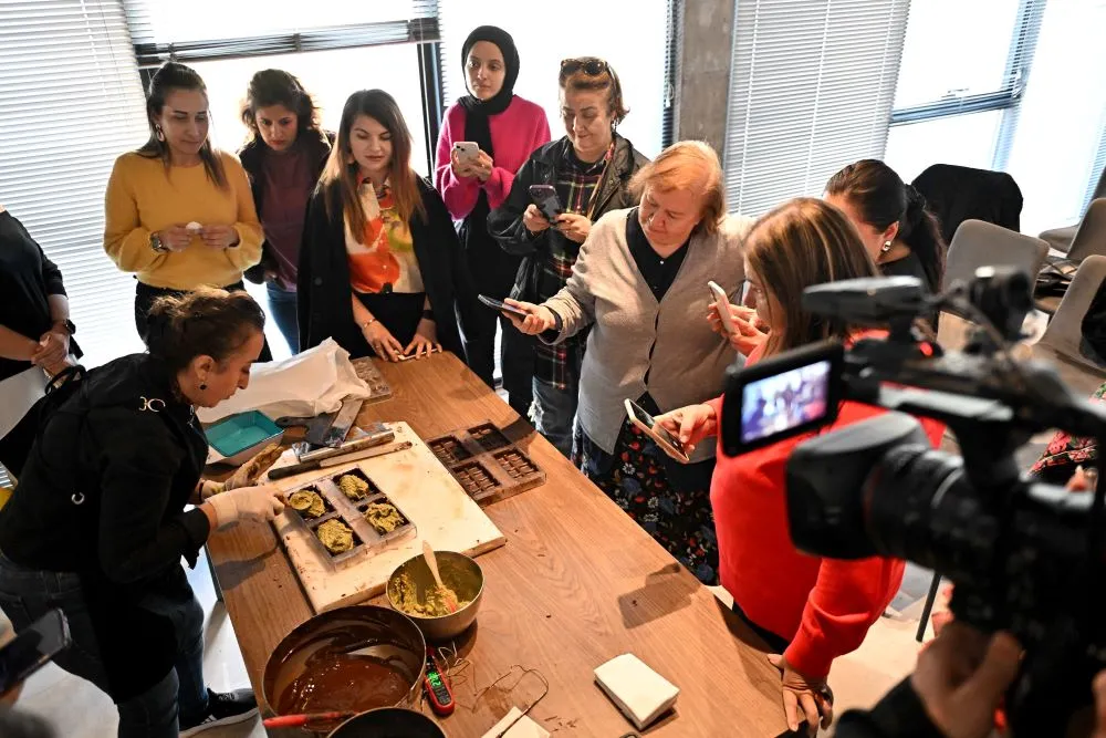 Dubai çikolata yapımını tamamlamasının ardından Eğitmen Kaçmaz, “Dubai çikolatası trend çikolata. Atölyemizde çikolata yapımını gösterirken aynı zamanda ısı derecelerini ve detaylı püf noktalarını göstererek katılımcılara faydalı bilgiler vermeye çalıştık” diye konuştu.