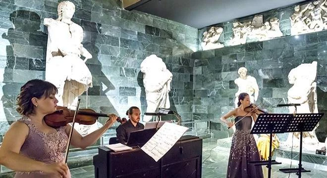 Roma imparatorları Traian, Hadrian, Septimius, Severus'a ait ve daha birçok heykelin korunduğu sergi alanını dolduran yerli ve yabancılara müzik ziyafeti sunan sanatçılar Demet Emen, Ece Dolu, Onur Altıparmak dünyaca ünlü bestecilerin eserlerini keman ve piyanolarıyla yorumladı. Tarihe ışık tutan heykellerin arasında keyifli, neşeli dakikalar yaşayan müzikseverler sanatçıları dakikalarca alkışladı. /HABERLER.COM