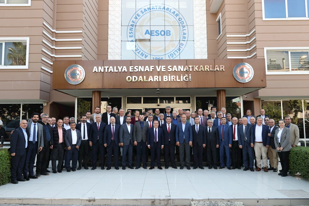 Antalya Büyükşehir Belediye Başkanı Muhittin Böcek, Antalya Esnaf ve Sanatkarlar Odaları Birliği’ni (AESOB) ziyaret ederek, oda başkanları ile toplantı yaptı. Gazipaşa’dan Kaş’a 75 oda başkanının katıldığı toplantıda esnafın sorunları masaya yatırıldı. Belediye bürokratlarının da hazır bulunduğu toplantı öncesi esnafa seslenen Başkan Böcek, kendisinin de ulaşım esnaflığından geldiğini hatırlattı. Her ilçede esnafın sorunlarını çözmeye çalıştıklarını belirten Başkan Böcek, sık sık toplantılar ve çalıştaylar düzenleyerek kenti esnafla birlikte yönetmeye çalıştıklarını anlattı. Vatandaşın derdine derman olmaya geldiklerini ifade eden Başkan Muhittin Böcek, geçen dönem yapılan sözleşmelerde işlevi kaybolan Halk Ekmek fabrikasının yerine Döşemealtı’nda 120 bin kapasiteli Halk Ekmek Fabrikası açarak, halka 3.25 TL’den ekmeği sattıklarını anlattı.