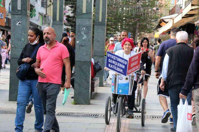Pedal çevirmeye öğle saatlerinde başlayan Kılıç, 'Akşam saatlerine kadar kalabalık tüm caddelere gidiyorum. Bağımlılık ile ilgili müzikler de koydum. Çoğu insan '67 yaşındasın, otur' evinde diyor. Oturma zamanı değil. İnsanların bakışı çok iyi. Kimseden tepki görmedim. Oğlumun tedavisi sürecinde bütün birikimimi kaybettim. Diğer çocuklarım da yardımcı oluyor. Kimse benim çocuğum içmez demesin. Bağımlı olmayın diyoruz. Uyuşturucu gençlerin katilidir. Ben çok mücadele ediyorum. Çocuğum şuanda 30 dakika eve akşam geç gelse aklıma bir sürü şey geliyor' açıklamasını yaptı. /HABERLER.COM
