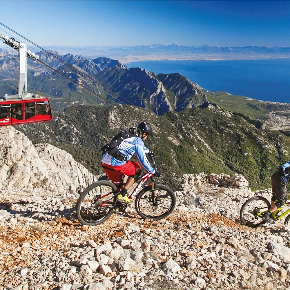 21 Mayıs Pazar sabahı Antalya Kemer ilçesi merkezinden hareket eden 8 kişilik bisiklet grubu Antalya’nın incisi Beydağları Sahil Milli Parkı içerisinde nefes kesen doğal güzellikler eşliğinde Kesmeboğazı, Gedelme, Yayla Kuzdere rotasını takip ederek 1800 metre rakımdaki Çukuryayla’ya ulaştı. Buradan orman içerisindeki patika yollara giren grup, bir müddet sonra zaman zaman yüzde 20 eğime ulaşan oldukça sarp ve taşlı-kayalı bir patikada 4 km civarında bisikletleri elde taşıyarak 2365 rakımda Tahtalı Dağı’nın zirvesinde bulunan Olympos Teleferik İstasyonuna çıkmayı başardı.