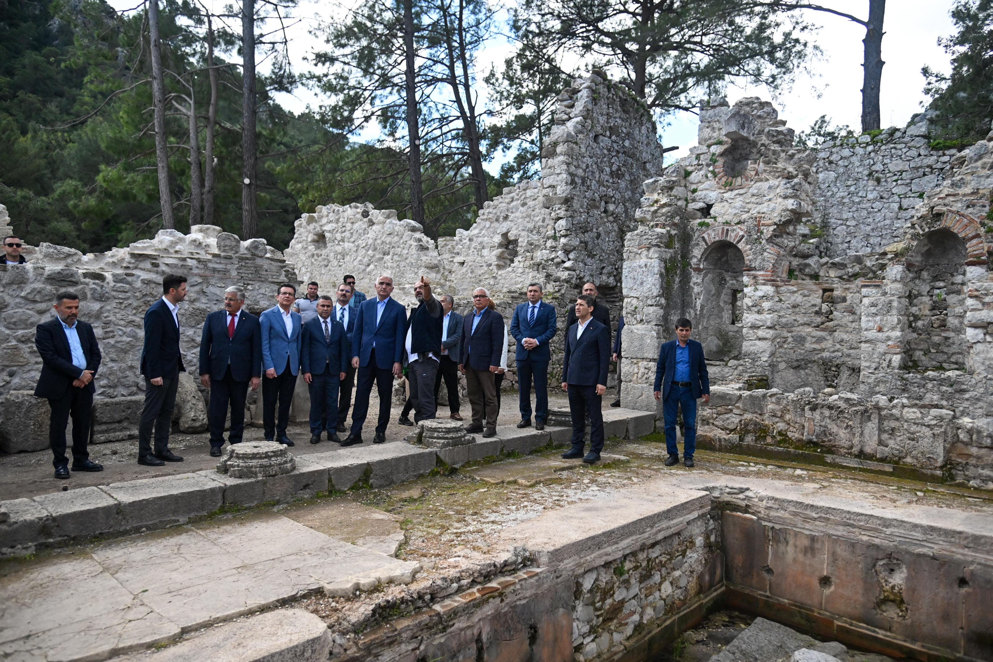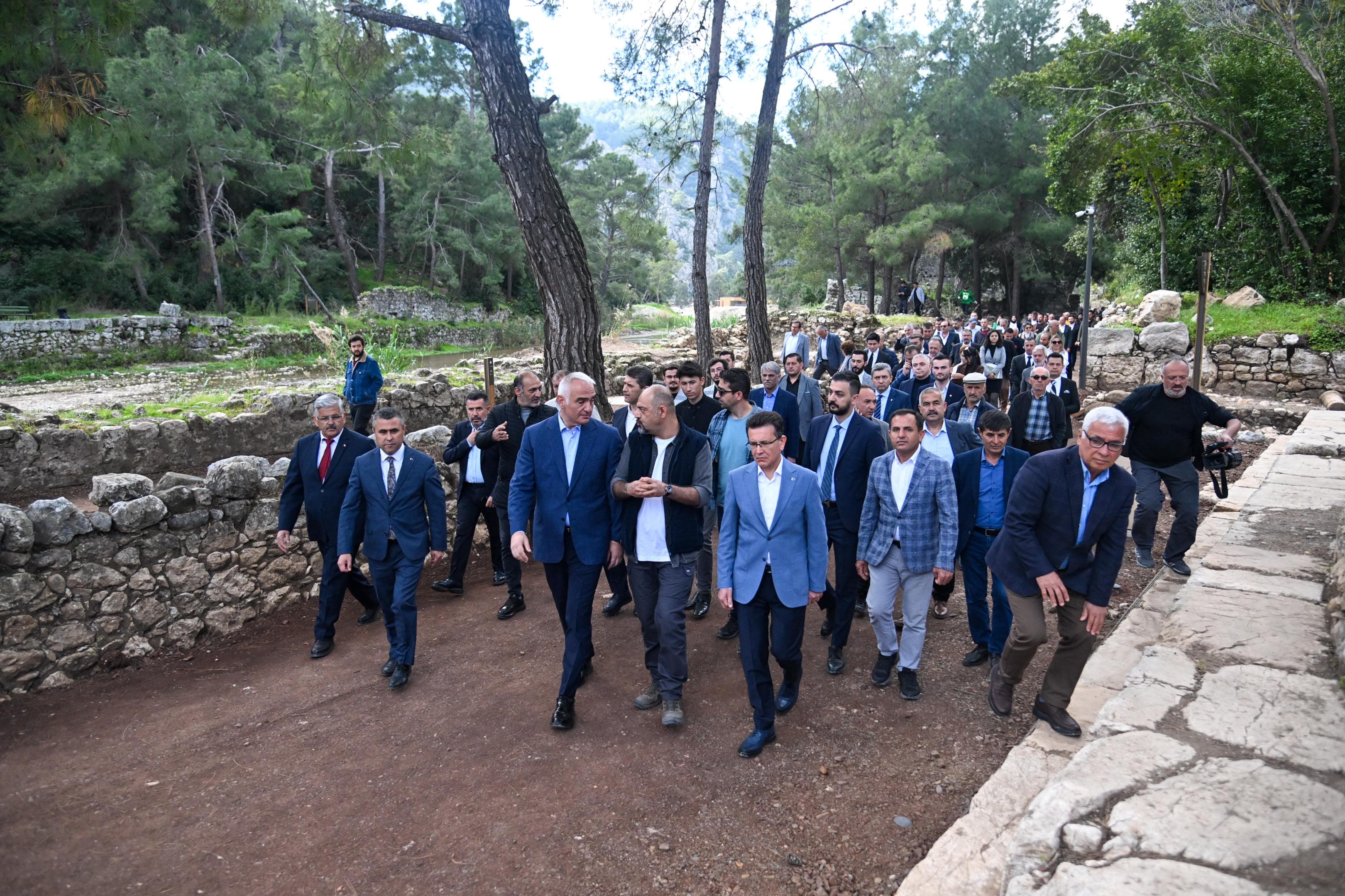 Yeni otopark, karşılama ofisi, jandarma karakolu, hediyelik eşya satış ofisi, kafeterya ve gişesiyle yenilenen Olimpos Karşılama Merkezinin açılışının ardından Bakan Ersoy ve beraberindeki heyet antik kentte incelemelerde bulunarak yerkililerden çalışmalar hakkında bilgi aldı.