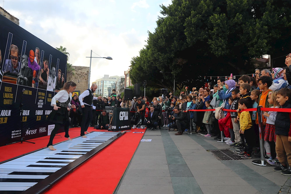 Arjantinli sanatçı Manuel Benyacar’ın yaptığı devasa büyüklükteki el yapımı piyanoyu ayaklarıyla çalan İtalyan sanatçılar Silvia Zotto ve Samuel Courtin’in eğlenceli gösterilerinde birbirinden renkli anlar yaşandı.