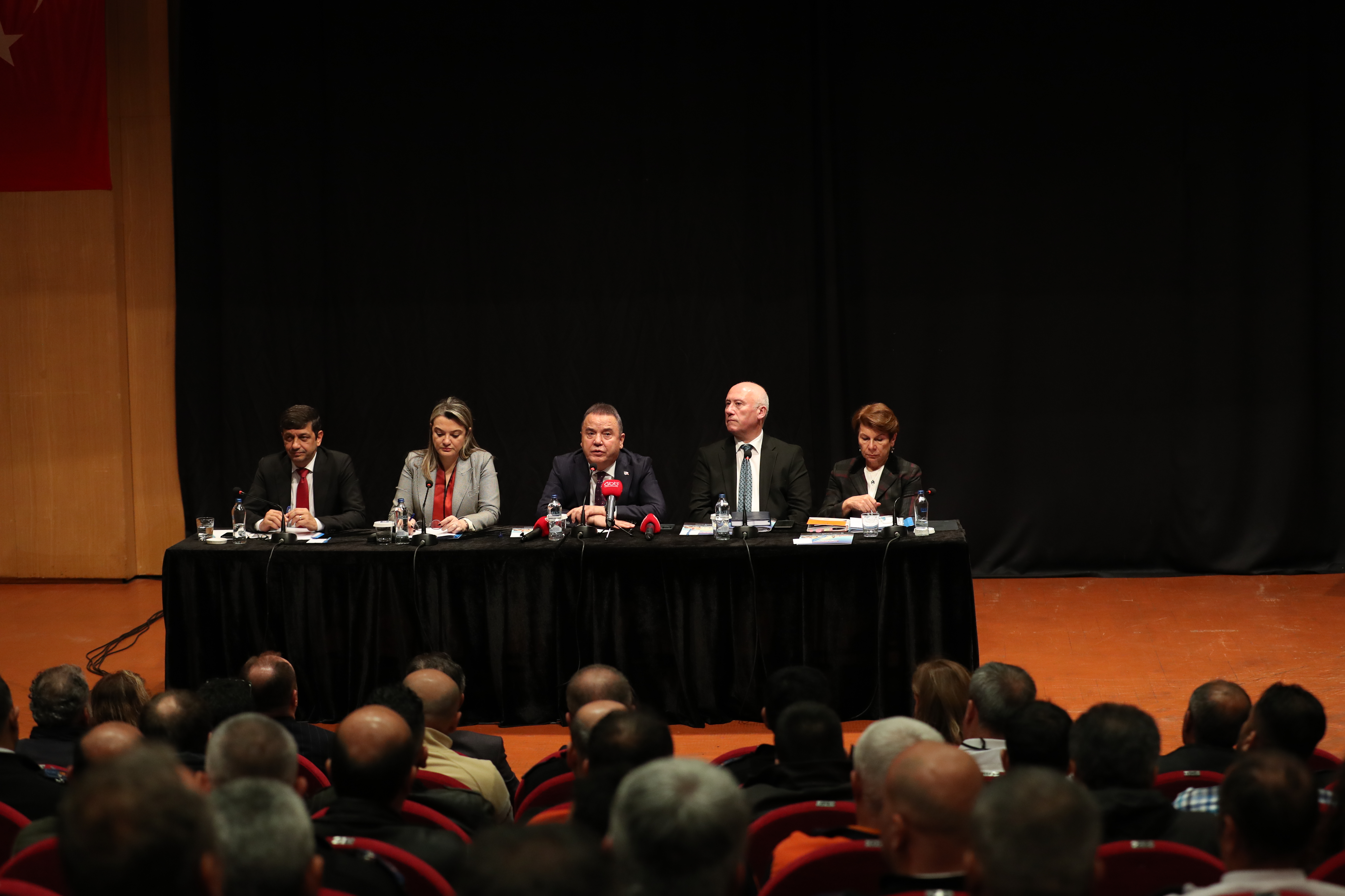 Antalya Büyükşehir Belediye Başkanı Muhittin Böcek, Genel Sekreter Cansel Tuncer ve bürokratlarıyla birlikte Antalya Ulaşım A.Ş.’de görev yapan siyah plakalı resmi otobüs şoförleriyle toplantı yaptı. Antalya Kültür Merkezi (AKM) Perge Salonu’nda yapılan toplantıda konuşan Başkan Muhittin Böcek, kent içi ulaşımda Antalyalılara hizmet veren 241 resmi plakalı otobüsünün işletmesinin Antalya Büyükşehir Belediyesi Ulaşım Dairesi Başkanlığı’na geçiş sürecine ilişkin açıklama yaptı.