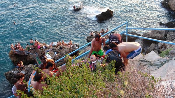 Antalya'da falezler üzerindeki merdivenden denize inmek isterken dengesini kaybedip kayalığa düşen Rus uyruklu kadın, ekiplerin ve vatandaşların çabasıyla 1,5 saatte kurtarılıp hastaneye götürüldü.