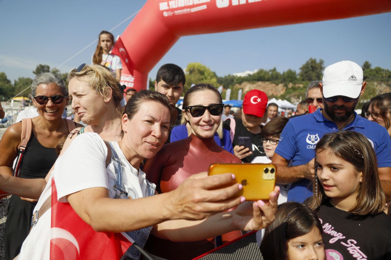 Türkiye Cumhuriyeti'nin 100'üncü yıl dönümü nedeniyle Antalya'da özel dalış gerçekleştiren Milli Sporcu ve Serbest Dalış Rekortmeni Şahika Ercümen, “Benim için de tarifsiz bir duygu. Çok mutluyum' dedi. Ercümen, dalış sonrası özellikle kadınların yoğun ilgisiyle karşılaştı.