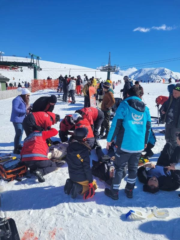 Antalya'nın Saklıkent Kayak Merkezi'nde kayak yapan kişi duramayınca telesiyejde sıra bekleyenlere çarparken, kayakçı dahil 4 kişi yaralandı.