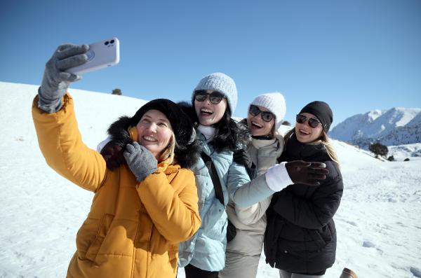 Arkadaş grubu ile Saklıkent'e gelen Rusya uyruklu Alisa Altan ise 'Kız arkadaşlarımla birlikte gezmeye geldik. Şişme bot ile kızak yapacağız. Antalya'da yaşıyorum. Rusya'dan geldiğim için karı özlüyorum. O nedenle buraya geldim' diye konuştu.
