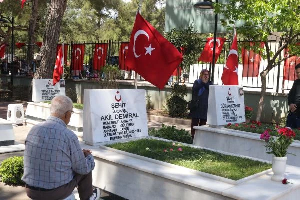 Antalya'da Ramazan Bayramı'nda mezarlıklara giden vatandaşlar ve şehit yakınları gözyaşı dökerek, kaybettikleri yakınlarının mezarları başında hem dua edip andı, hem de mezarlara bakım yaptı.