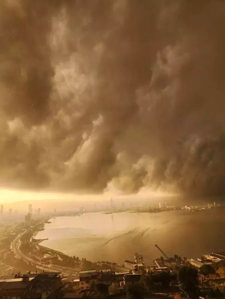 İzmir'de sabah saatlerinde başlayan kısa süreli yağmur, aralıklarla etkili olurken, gökyüzünde ise bulutların şöleni hakim oldu. Bulutların körfez üzerinde adeta duvar ördüğü görülürken vatandaşlar cep telefonu kameralarıyla bu eşsiz anları ölümsüzleştirdi. /HÜRRİYET.COM.TR