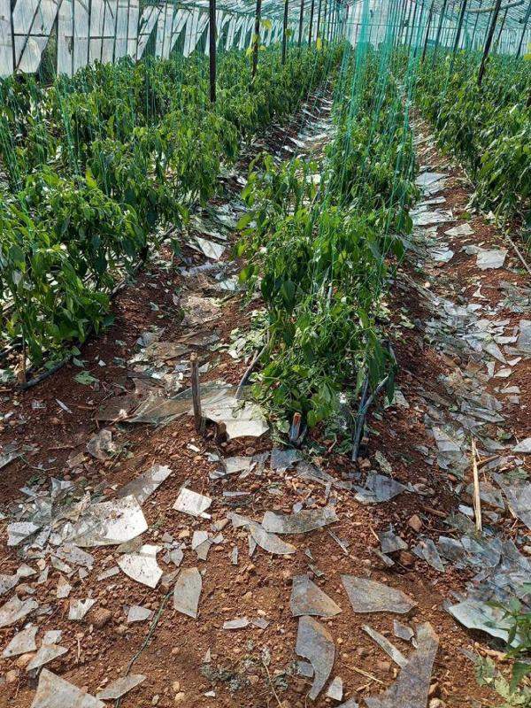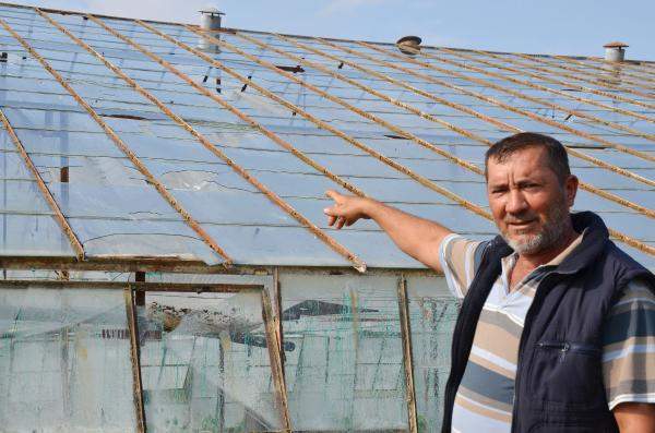 Serasının camı kırılan ve mahsulü zarar gören Veli Öztürk de 'Sabah saat 06.00 civarında aniden fırtına çıktı ve dolu yağdı. Ben böyle bir şey görmedim. Sera camları ve biberler zarar gördü. Birer dönümlük 2 seramda zarar meydana geldi. Biberleri 1,5 ay önce dikmiştim' diye konuştu.