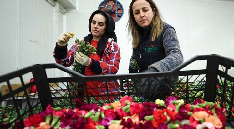 14 Şubat'a özel kırmızı ağırlıklı üretim yapıldığını anlatan Dumancı, 'İhracatta en önemli ürünümüz karanfil. Sevgililer Günü için yüzde 60'a yakın kırmızı karanfil üretimimiz oldu. Sevgiyi ifade ettiği için 14 Şubat'ta daha çok kırmızı renk tercih ediliyor.' diye konuştu.