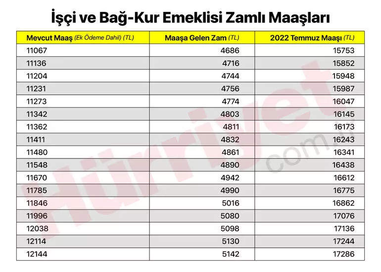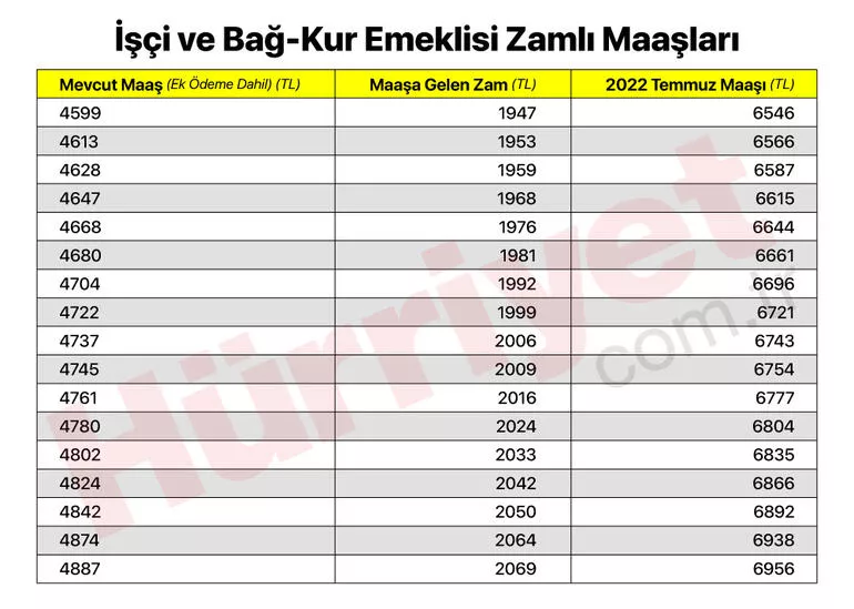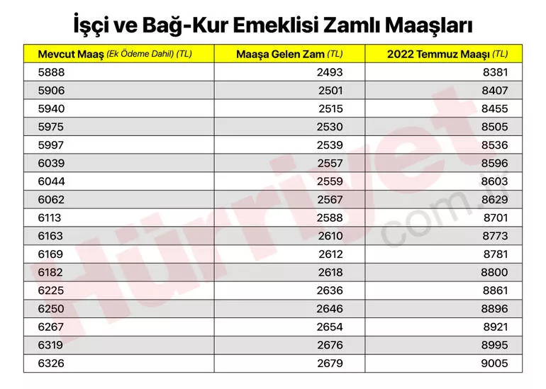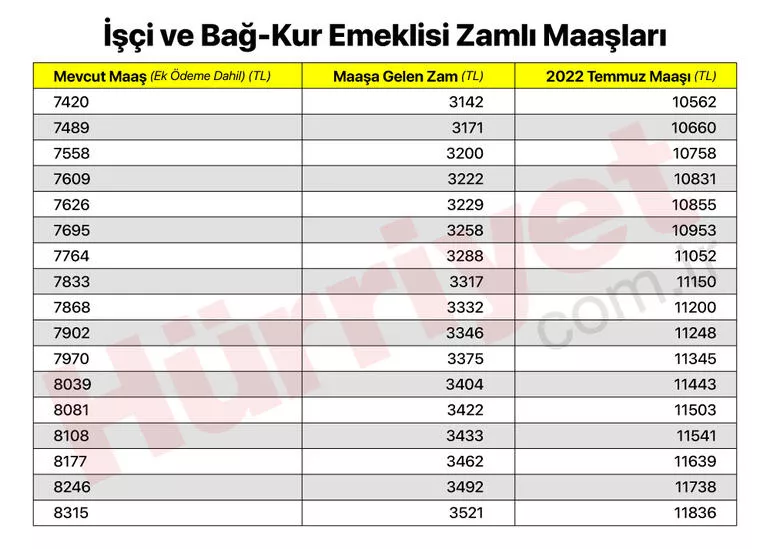 Haziran ayı enflasyon rakamlarının açıklanmasıyla birlikte 14 milyon emeklinin maaşlarına yapılacak zam oranı belli oldu. SGK ve Bağ-Kur emeklileri zamlı maaşlarını bu ay çekmeye başlayacak. İşte emekli zammı oranı ve yeni zamlı emekli maaşları