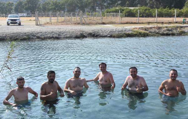 Soğuk suya girmek için Kaş'tan gelen Hüseyin Güneş, 'Demre'deki suyu arkadaşım tavsiye etti. Gerçekten çok güzel. Suya girdiğim zaman sıcaklığı hissetmiyorum, soğuk, buz gibi. Çok ferah, çok güzel. Herkese de tavsiye ederim' dedi.