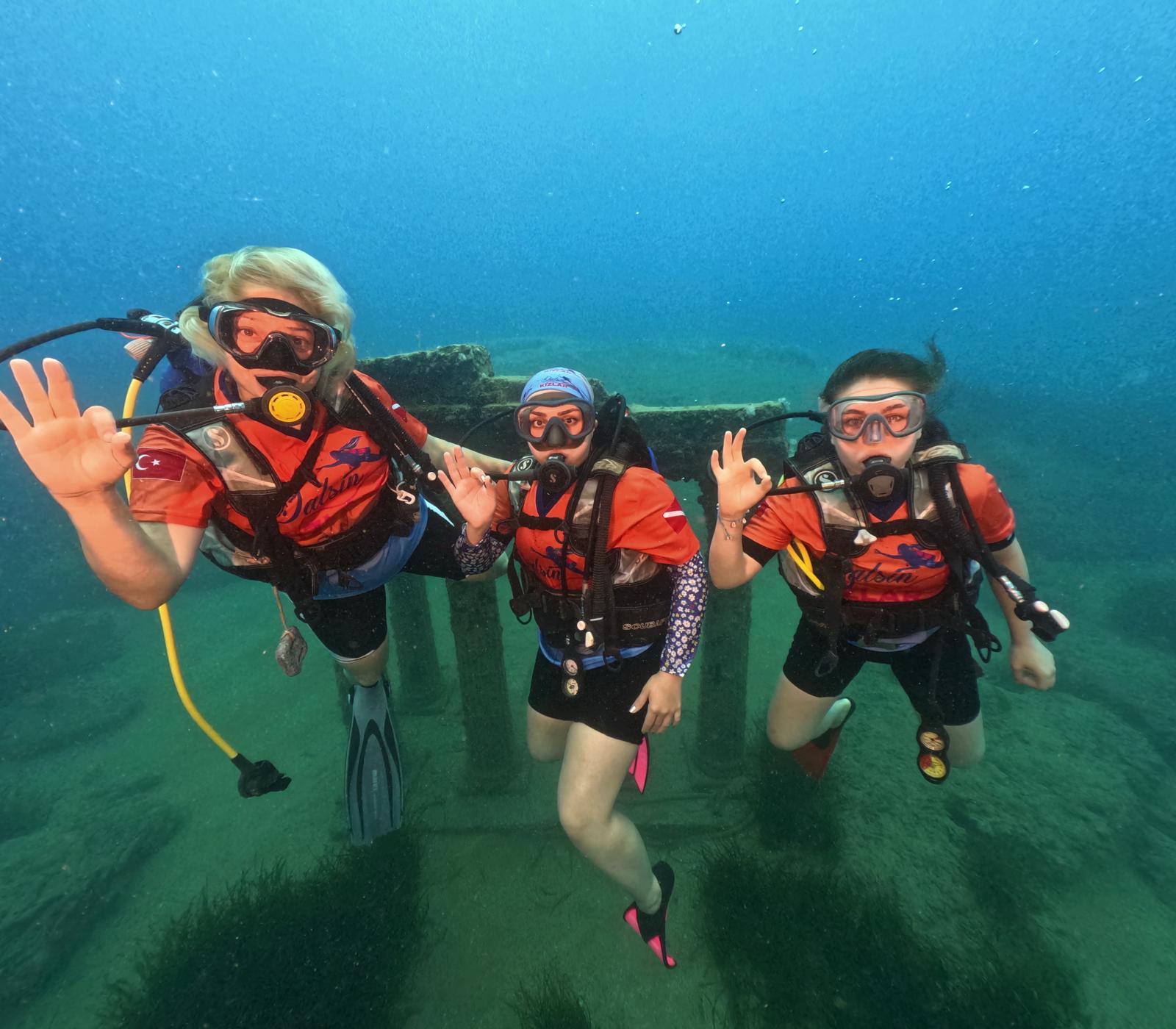 Bir kısmı daha önce hiç profesyonel dalış yapmamış yaklaşık 90 kadın su altını keşfetme imkanı yakaladı. Dünyanın en büyük ikinci su altı müzesini olan Side Sualtı Müzesi’ne sabah 9.00’da başlayan dalışlar, gruplar halinde 16.00’ya kadar devam etti.
