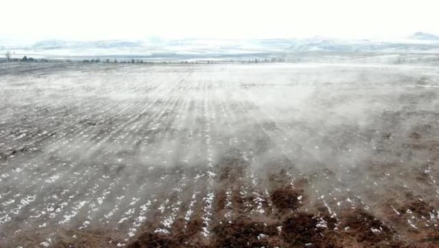 Sivas'ın Hafik İlçesinde çevresinin karla kaplı olmasına rağmen kar tutmayan ve su buharı yükselen geniş bir tarla merak konusu oldu, tarlanın bilimsel açıdan araştırılması istendi.