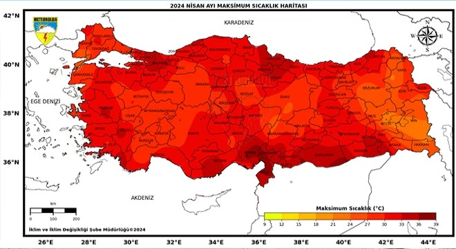 Meteoroloji Genel Müdürlüğü 2024 Yılı Nisan Ayı Ortalama Sıcaklıklarının 1991-2020 Normallerine Göre Mukayesesi Raporu açıklandı. 2024 yılı nisan ayında ortalama sıcaklıklar Türkiye genelinde mevsim normallerinin üzerinde gerçekleşti. 1991-2020 normalleri nisan ayı ortalama sıcaklığı 12,3 derece olup, 2024 yılı nisan ayı sıcaklığı ise 16,6 derece olarak gerçekleşti. 2024 yılı nisan ayı, 1991-2020 normalleri nisan ayı ortalamasının 4,3 derece üzerinde yaşandı. 2024 yılı nisan ayı, son 53 yılın en sıcak nisan ayı olarak kayıtlara geçti.
