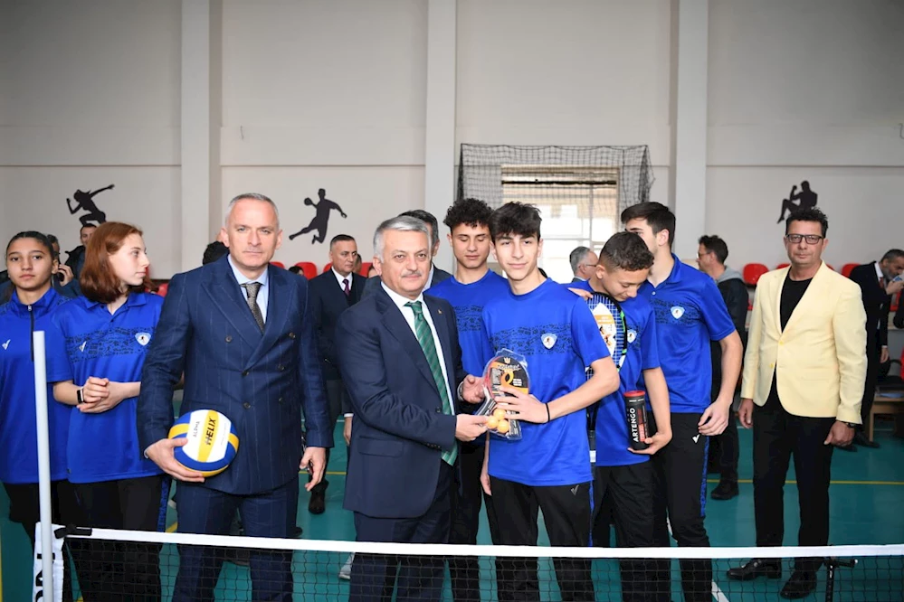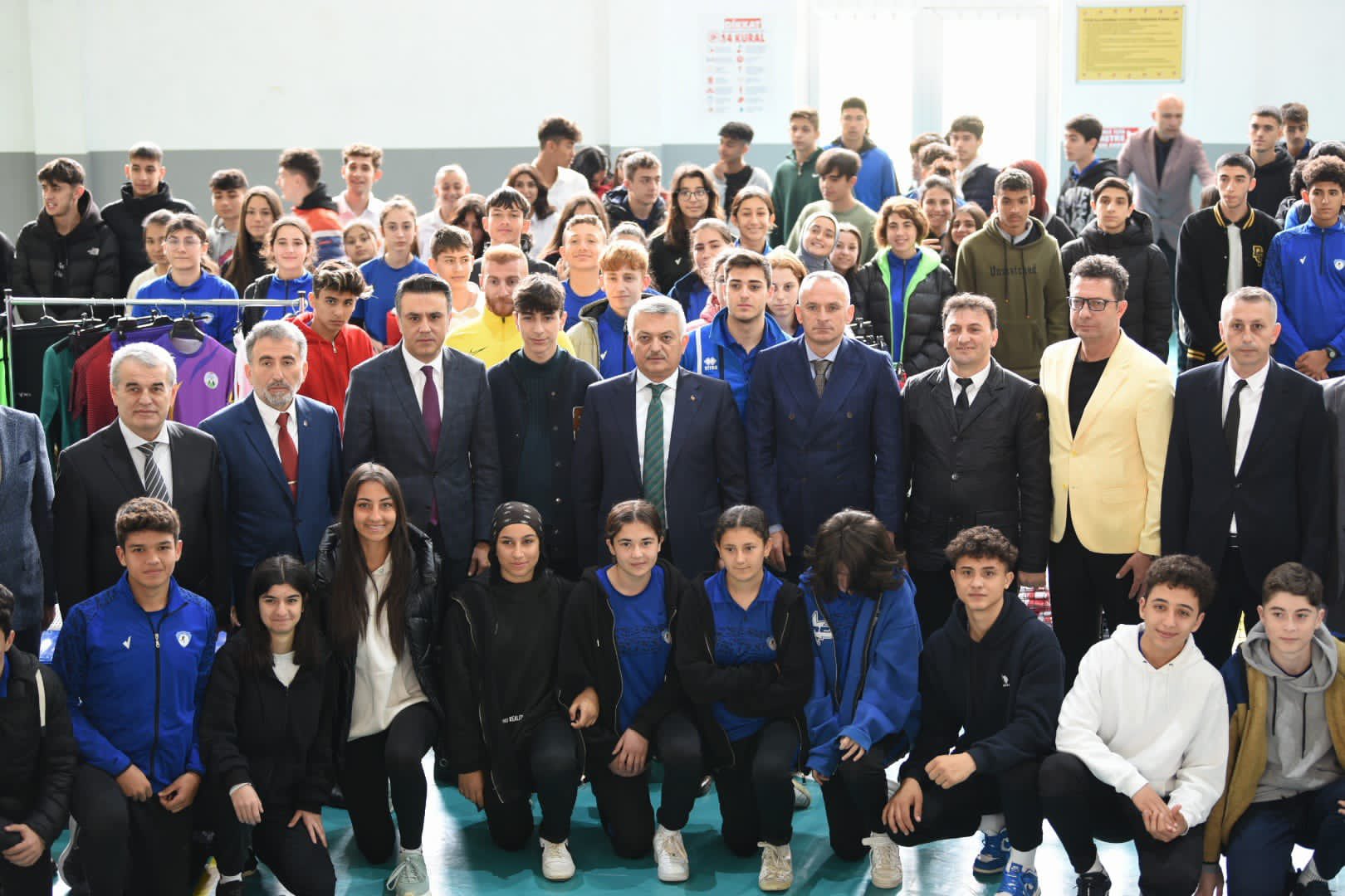 Vali Ersin Yazıcı Kamile-Metin Yapar İlkokulu programının ardından ‘Spor Liseleri Ortak Yönetim Modeli Protokolü’ kapsamında Gençlik ve Spor Bakanlığı tarafından temin edilen ve Antalya Spor Lisesi, Alanya Mevlüt Çavuşoğlu Lisesi ve Kumluca Spor Lisesi’nden 887 öğrencinin faydalanacağı 558 Bin Türk Lirası tutarındaki spor malzemesi dağıtım törenine katıldı.