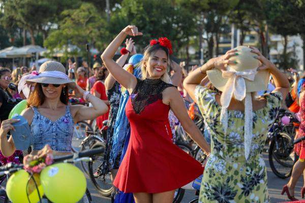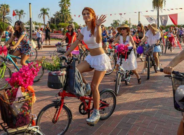 'Avrupa Hareketlilik Haftası' kapsamında, 'Dünya Otomobilsiz Kentler Günü'ne vurgu yapmak ve bozulan doğa dengesine dikkati çekmek amacıyla planlanan 'Süslü Kadınlar Bisiklet Turu', dünya çapında yüzlerce kentle eş zamanlı olarak Antalya'da düzenlendi. Çiçek ve renkli kağıtlarla süsledikleri bisikletleriyle Atatürk Kültür Merkezi önünde toplanan yaklaşık 100 kadın, tur öncesinde fotoğraf çektirip dans etti. Renkli kıyafetleri ve topuklu ayakkabılarıyla bisikletlerine binen kadınların bazıları çiçeklerden yaptıkları taçları da saçlarına taktı.