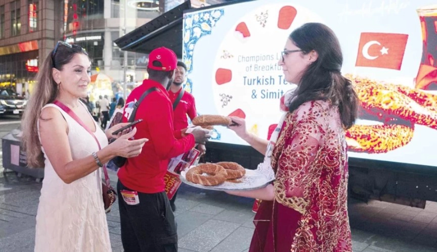 Emine Erdoğan’ın himayesinde, Sanayi ve Teknoloji Bakanlığı’na bağlı Kalkınma Ajansları eliyle hayata geçirilen, “Anadoludakiler” projesinin tanıtımı kapsamında New York’un ünlü Times Meydanı’nda, Türk kültürünün vazgeçilmez ikililerinden simit ve çay ikram edilmişti. /HÜRRİYET.COM.TR
