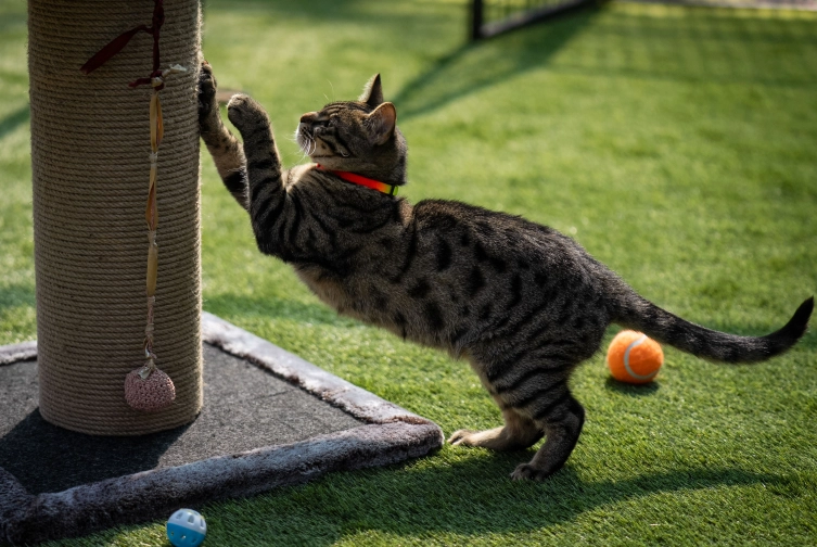 Oyuncu kedilerin zaman geçirebileceği; alana tırmanma, zıplama ve oyun ihtiyaçlarına yönelik ahşap parkurlar kuruldu.